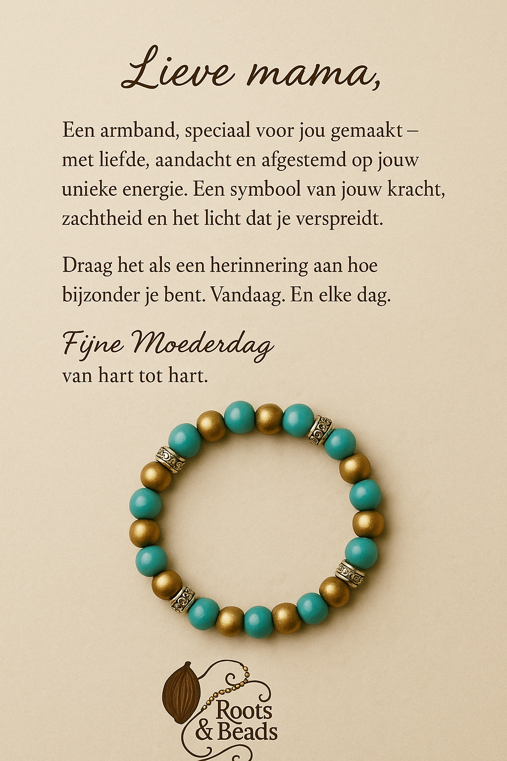 Elke armband uit de Roots & Beads collectie wordt intuïtief, met liefde en fluisteringen vanuit het hart gecreëerd.